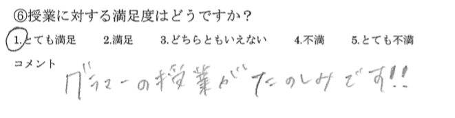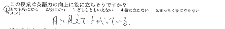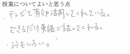 その後の授業は更に真面目に取り組むようになり、コミュニケーション能力も向上し、とても嬉しくて、本当に得した気分になりました。