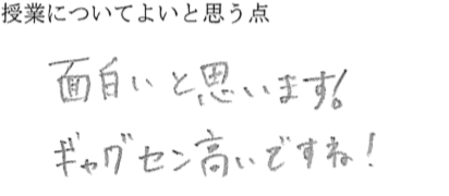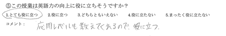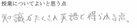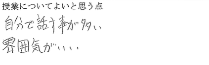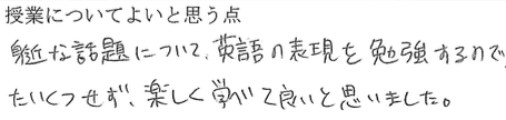 また、今まで行った塾の中で英語の勉強を一番楽しくできたため、今考えたら非常に良かったと思います。