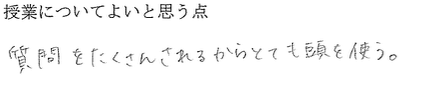 文法では他の先生とは違い暗記では無く言葉としての本質を教えてくださり、様々な文や問題に応用することができました。
